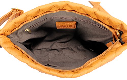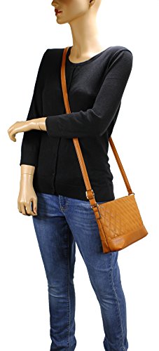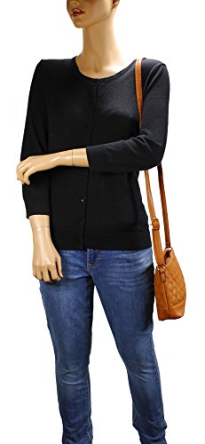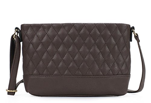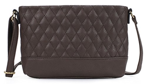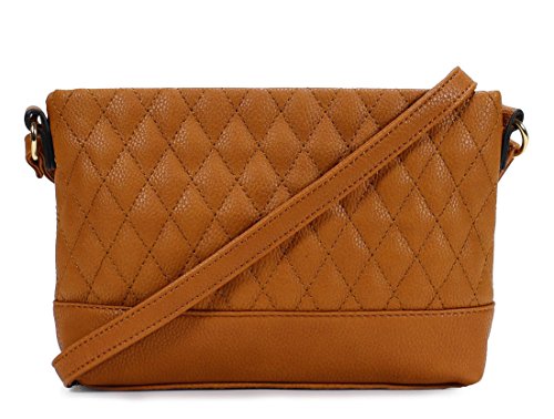 -. Feature : Ultra soft synthetic quilted vegan leather with fabric lining. / Classic gold hardware. / Interior cell phone pocket and small side zipper pocket. / Adjustable shoulder strap drops 23". / Size: 8.5"x6.4"2.2"