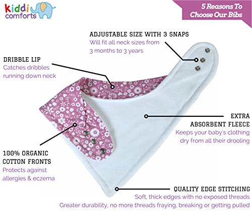 -. Binding : Baby Product -. Brand : kiddi comforts -. Color : Summer Delight -. Department : baby-girls -. EAN : 5060505320015 -. Feature : 💚 PURE ORGANIC COTTON FRONTS TO PROTECT YOUR BABY GIRL FROM ALLERGIES AND RASHES - The fronts of our bandana bibs are made using 100% GOTS Certified Organic Cotton. This makes our baby bandana bibs absorbent, softer, more breathable and much less likely to trigger allergies and eczema since there are no harmful chemicals used in the growing of the cotton. / 💚 EXTRA THICK ABSORBENT FLEECE BACKING TO KEEP YOUR BABY GIRL'S CLOTHING DRY - Our drool bibs which are lovingly hand-made, have been designed with a soft thick polyester fleece backing. This makes our bandana bibs outstanding for absorbing all your baby's drool & spit ups keeping your baby and their clothing dry and clean meaning less laundry! / 💚 3 ADJUSTABLE SNAPS TO ENSURE A PERFECT FIT FOR YOUR BABY GIRL - Most brands only provide 2 snaps. We listened to moms telling us 2 snaps weren't enough. They didn't provide enough size settings for their growing babies. So we now provide 3 nickel-free snaps across all our baby bibs, giving many more neck size options! Our drool bibs will fit newborns & toddlers from 3 months to 3 years. / 💚 A BEAUTIFUL STYLISH BABY GIRL GIFT - Six beautifully designed P.R.Ints that will make someone's baby girl the star attraction of any baby gathering! A fabulous newborn baby gift for new moms, parents, baby showers or for any excuse to make a baby look cute, adorable and fashionable! Our bandana drool bibs are a great baby girl gift or simply a wonderful Birthday or Christmas present for a little one. / 💚 100% MONEY BACK GUARANTEE - Our customers are extremely important so if for any reason you aren't satisfied with our baby bibs, let us know and we'll refund your money. However, we're quite sure you'll love our baby drool bibs for their effectiveness at keeping your baby's clothing dry from their drools, dribbles & spit ups and their softness against your baby's delicate skin. And because our bandana bibs use 100% Organic Cotton, you'll be protecting your baby from allergies & eczema. -. IsAdultProduct : 0 -. Label : Aspiire Limited -. Manufacturer : Aspiire Limited -. Model : KC-BIB07-P02 -. NumberOfItems : 6 -. ProductGroup : Baby Product -. ProductTypeName : BABY_PRODUCT -. Publisher : Aspiire Limited -. Studio : Aspiire Limited -. Title : Baby Bandana Drool Bibs - 6 Pack Gift Set for Girls, Organic Cotton, 3 Snaps To Fit All Neck Sizes, Soft, Extra Absorbent, Easy To Clean, Perfect Baby Shower Gift Set