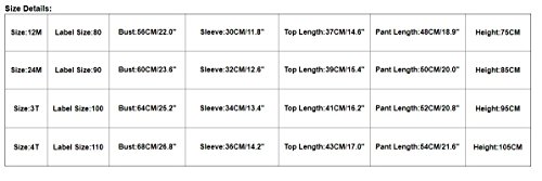 Size Details: Size:12M ?Label?Size:80 ? Bust:56CM/22.0" ?Sleeve:30CM/11.8" ?Top Length:37CM/14.6" ?Pant Length:48CM/18.9" ?Height:75CM Size:24M ?Label?Size:90 ? Bust:60CM/23.6" ?Sleeve:32CM/12.6" ?Top Length:39CM/15.4" ?Pant Length:50CM/20.0" ?Height:85CM Size:3T ? ? Label?Size:100 Bust:64CM/25.2" ?Sleeve:34CM/13.4" ?Top Length:41CM/16.2" ?Pant Length:52CM/20.8" ?Height:95CM Size:4T ? ? Label?Size:110 Bust:68CM/26.8" ?Sleeve:36CM/14.2" ?Top Length:43CM/17.0" ?Pant Length:54CM/21.6" ?Height:105CM About Commodities:? ★1. There may be a little difference of the color between the picture and the real goods because of the pixel. We hope you can understand sincerely. ★2. Please allow slight deviation for the color and measurement. Thanks. ★3. The goods will be delivered to you about18-25 days, if you need it in urgency you can choose DHL, the delivery time is 3-5 days. Please contact us if you have question about the delivery ★4.My store updates often, you are welcome to visit here at any time. ? 0 |