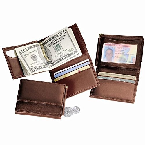 Studio : Royce Leather Publisher : Royce Leather Product Description Royce Leather Men's Money Clip Wallet. A uniquely designed, compact and stylish gold tone Nappa Leather money clip with five turned edge credit card pockets, window view ID pocket, outside change pocket and accessory pocket. Available in Black or Coco. Dimensions: 3 1/4" x 4 1/8" x 3/4". The perfect presentation for a gift on any occasion All Royce small leather products deliver in an upscale 2-piece dark blue gift box, thick silver elastic ribbon with bow, dark blue tissue paper, and an embossed silver sticker. At no additional cost! 0