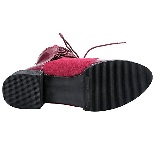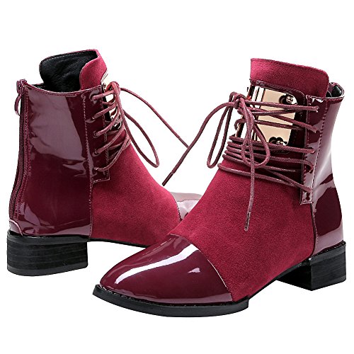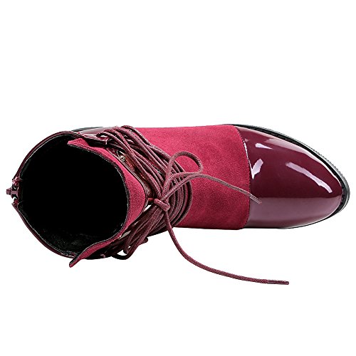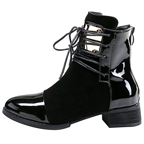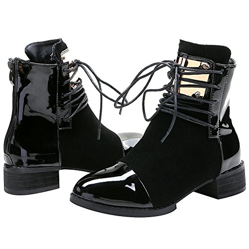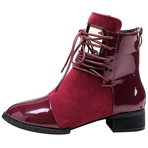 Binding : Apparel Product Description 2017 newly women autumn-winter chunky heel ankle boots with warm fluff lining. Split joint of punk style patent PU and soft fabric for the upper,very special and stylish. Back zip to wear, easy and convenient,there is also decorative shoe laces in the front. Two classic colors,black and red. 0
