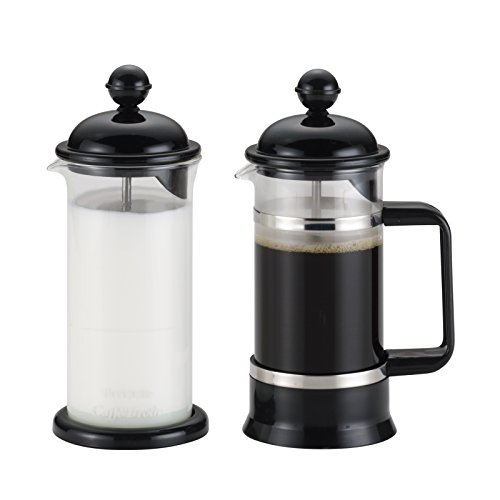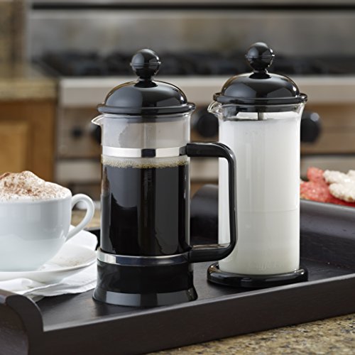 BonJour Coffee Borosilicate Glass French Press & Milk Frother Set, 12.7-Ounce, La Petite, Black