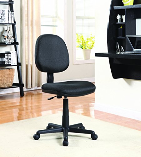 -. Binding : Office Product -. Brand : Coaster Home Furnishings -. Feature : Dimensions: 19.5W x 17.5D x 31.5-41H in. / Seat dimensions: 17.5W x 17.5D in. / Made with PVC and fabric upholstery / Black finish / Armless design with rolling wheels -. Label : Coaster Co of America -. Manufacturer : Coaster Co of America -. MPN : 4200 -. PackageQuantity : 1 -. PartNumber : 4200 -. ProductGroup : Office Product -. ProductTypeName : OFFICE_PRODUCTS -. Publisher : Coaster Co of America -. Studio : Coaster Co of America -. Title : Coaster Furniture Office Task Chair - Black
