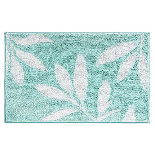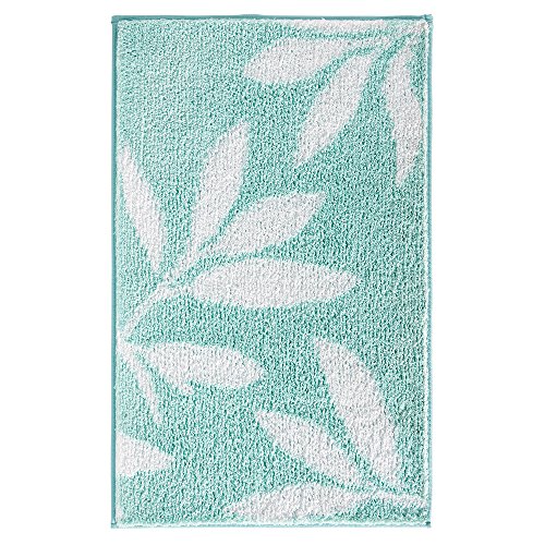 mDesign Leaves Soft Microfiber Non-Slip Bathroom Mat/Rug for Bathroom, Vanity, Bathtub/Shower, Dorm Room - 34" x 21", Mint/White