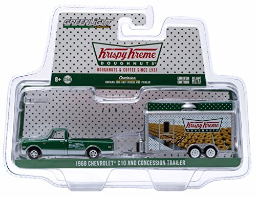 -. Feature : 1968 CHEVROLET C10 & CONCESSION TRAILER (Krispy Kreme Doughnuts) * Hitch & Tow Truck & Trailer Series 4 * Limited Edition 2015 Greenlight Collectibles 1:64 Scale Die-Cast Vehicle Set / Limited Edition Hitch & Tow Series 4 1:64 scale vehicle and trailer measure approximately 7 inches long when hooked up together. / New tooling. Authentic decoration. Die-cast metal chassis. / All trailers come with working corkscrew jacks. True-to-scale detail & serialized. / Ages 8 and up. From Greenlight Collectibles.