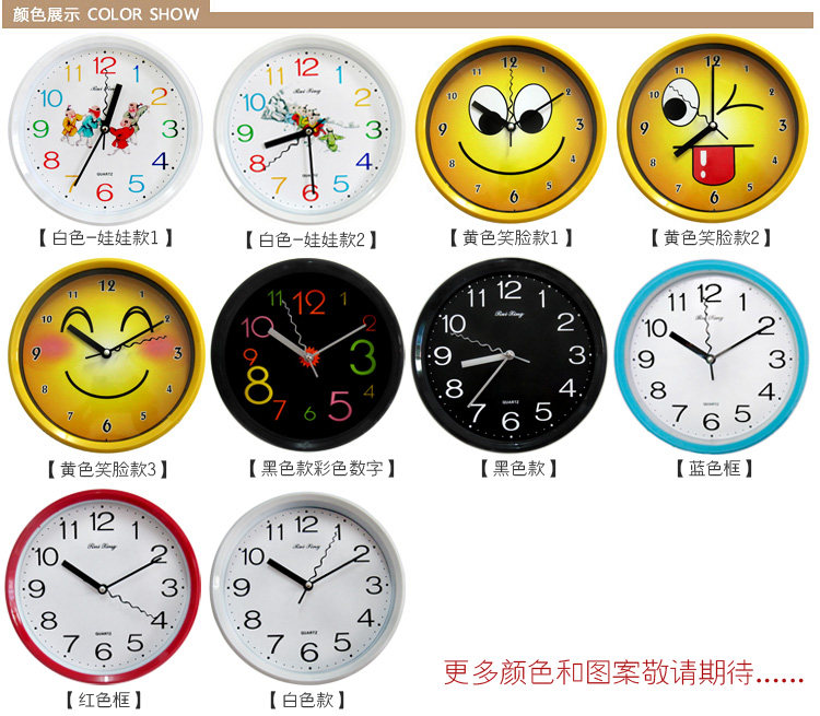 产品名称: 8英寸挂钟,高档塑料挂钟,简约大方外观,多色可选。