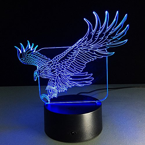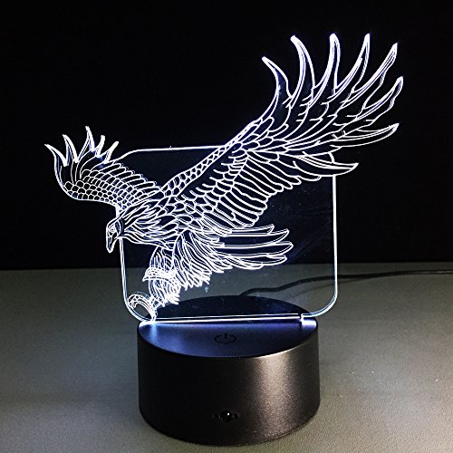 -. Title : ATD 3D Optical Illusion Eagle 7 Color Changing 15 Keys Remote LED Touch Acrylic Desk Lamp Night Light