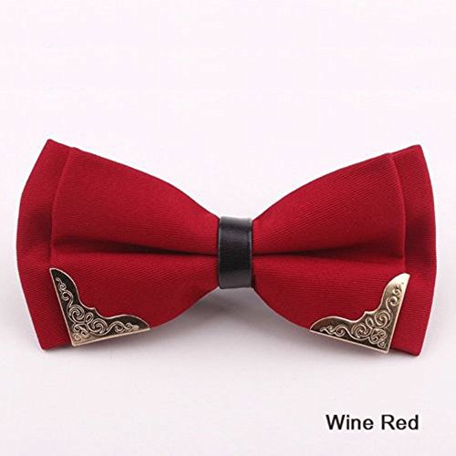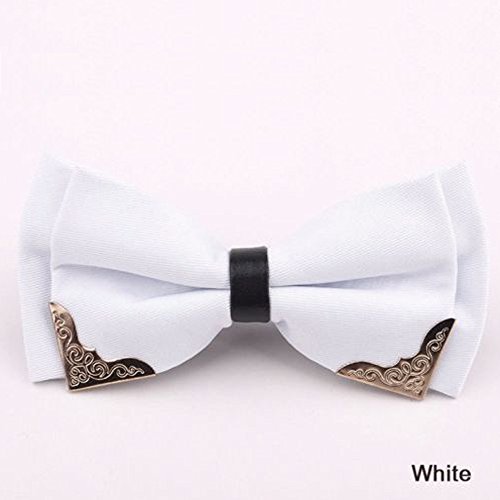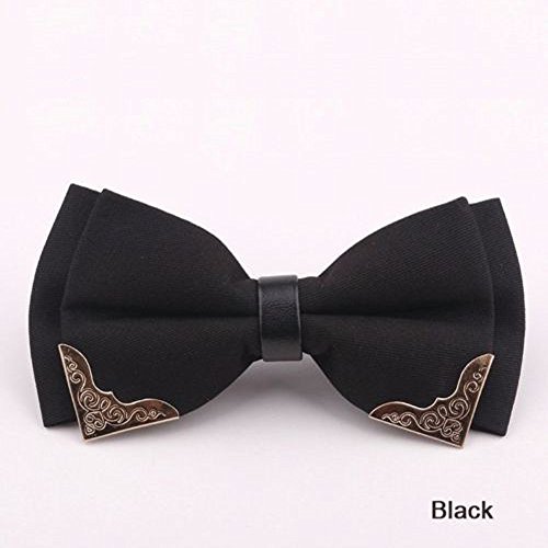Product Description Product description High Quality Men's Two Layers Pre-tied Bow Ties, with gold metal edge Material: Polyester Silk PU Leather Gold Metal Size: Approx 4.72 inches * Height : 2.36 inches Length of band: Adjustable( 9 - 17.8 inch neck size ) A perfect compliment for any group, wedding party or holiday event Note: Accessorize both formal and casual looks. Dress up with elegant cufflinks, vest, suspenders or cummerbund, or pair with a nice shirt, sweater and jeans. 0-1 inch error of measuring is a reasonable range due to different measurement methods. Please allow little color difference due to different camera or light environment. it's not too shiny nor is it flat. Brightly solid colored bow ties are typically not suited for traditional formal dress codes. Nevertheless, they are very popular for certain functions such as outfitting the wedding party with matching colored neckwear to the wedding theme color, for school proms and dances, as well as for kids. 0
