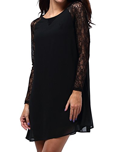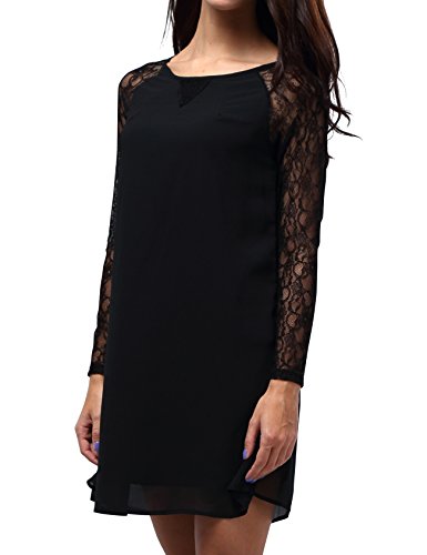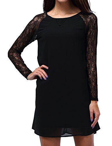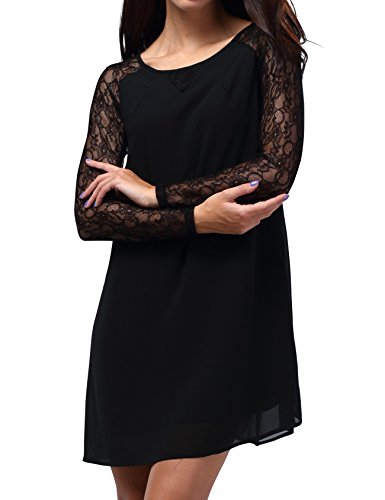 Chiffon Dress Lace Insert Loose One-piece Shift Dress