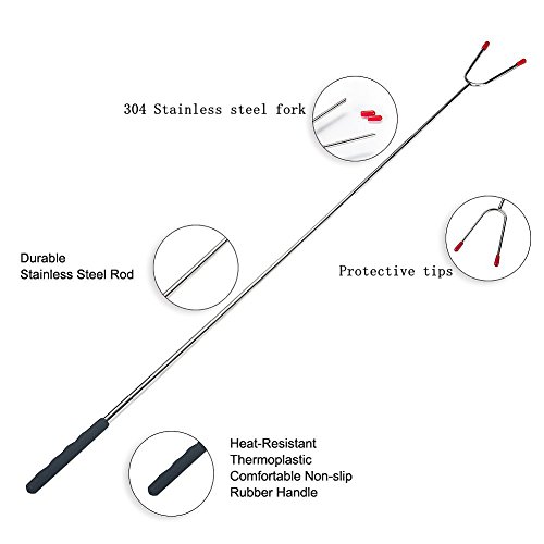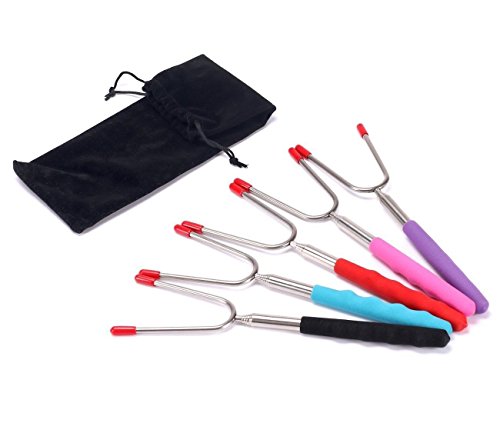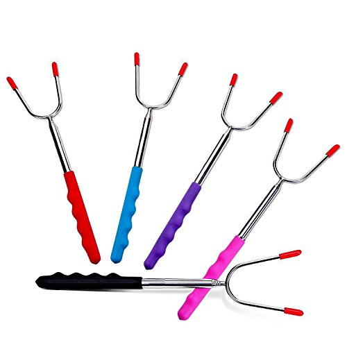 Studio : SeaMaid Publisher : SeaMaid Product Description Specifications Material of the fork: Stainless Steel Color of the handle:Black, blue, purple, pink, red Adjustable length:25-85cm (10"- 33.5") Package: cloth bag (Pack of 5) Notice: 1. When using these sticks, please extend it as far as possible from the fire for keeping a safe distance to protect the handle from overheat melting. 2. Kids must use these under adult supervision to avoid accidents.