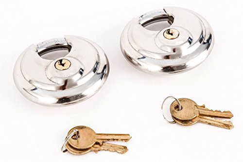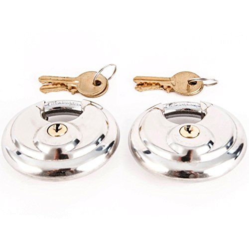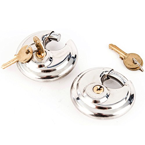 Stainless Steel Shrouded Disc Padlock with 2-3/4" wide body (pack of 2) Shackle Shielded Trailer Self Storage Pair Keyed Alike With 4 Keys Included 70 mm