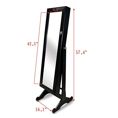 FEATURES: Full length Mirror front; 4 -level Adjustable angel; Sturdy MDF wood; Black Inner lining; Lock and key; Easy assembly required.