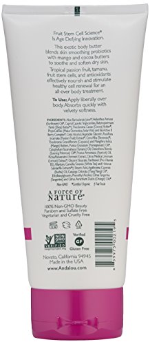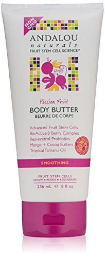 -. Binding : Health and Beauty -. Brand : Andalou Naturals -. Department : Health and Personal Care -. EAN : 0859975002195 -. Feature : Designed with regenerating fruit stem cell science / Blends skin smoothing probiotics with mango and cocoa butters to soothe and soften dry skin / Tropical passion fruit extract calms and soothes skin with replenishing vitamin A and C / Anti-oxidants effectively nourish and stimulate healthy cell renewal / Use as an all-over body treatment -. IsAdultProduct : 0 -. Label : Aroma Naturals -. LegalDisclaimer : Actual product packaging and materials may contain more and different information than what is shown on our website. We recommend that you do not rely solely on the information presented and that you always read labels, warnings, and directions before using or consuming a product. Please see our full disclaimer below. -. Manufacturer : Aroma Naturals -. Model : 067967 -. MPN : 26165 -. NumberOfItems : 1 -. PackageQuantity : 1 -. PartNumber : 26165 -. ProductGroup : Beauty -. ProductTypeName : BEAUTY -. PublicationDate : 2013-06-11 -. Publisher : Aroma Naturals -. Size : 8 oz -. Studio : Aroma Naturals -. Title : Andalou Naturals Smoothing Body Butter, Passion Fruit, 8 Ounce -. UPC : 859975002195