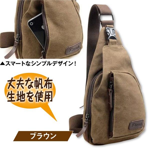 丈夫な帆布キャンバス生地の素材でカジュアルなボディバッグです♪斜め掛けにも・・・ワンショルダーにも・・・使い勝手が広がるボディバッグを格安で!ポケットが多数あるので小物が多くても安心!ショルダーの長さも調節可能!飽きのこないデザインで、使えば使うほど味が出る長く愛用できるアイテムです。・丈夫な帆布生地を使用・斜め掛けにも…・ワンショルダーにも…スマートなシンプルデザイン!外ポケットにスマホも楽々収納!見た目以上の収納力&丈夫さ!■サイズ:底部分18×37cm マチ5cm