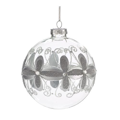 Burton & Burton Ornament 4" Clear Glass With Gray