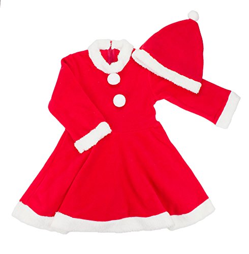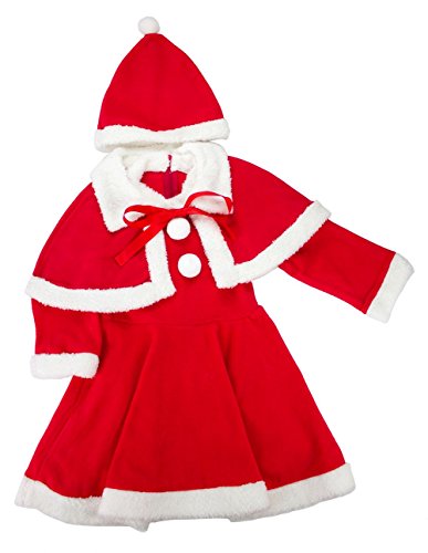 -. Brand : Spunky Kids -. Color : Red -. Department : baby-girls -. Feature : Materials: Cotton blends with fleece. Hand wash with cold water. / **Please refer to the actual measurement when order. / 6-12 Months: Hat Approx. 19" Dress: Chest 22" Length 20" / 12-18 Months: Hat Approx. 19" Dress: Chest 23" Length 20.5" / 18-24 Months: Hat Approx. 19" Dress: Chest 24" Length 22.5" -. ProductGroup : Apparel -. ProductTypeName : BABY_COSTUME -. Title : 3-PC Girl Christmas Santa Claus Dress with Cloak and Hat