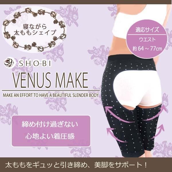寝るときに使用することで、太ももをギュッと引き締めてくれます。締め付けすぎない心地よい着圧感です。 製造国:中国 素材・材質:ナイロン、ポリウレタン 商品サイズ:ウエスト64~77cm 仕様:洗濯機洗い可 ※サプライヤー直送品 ご注文後2~3営業日後の出荷となります【商品名】SHO-BI ビーナスメイク 寝ながら太ももシェイプ
