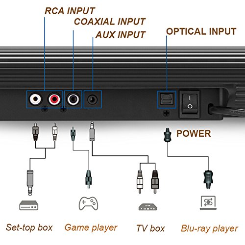 Connect It Your Way What do traditional devices like TVs, PCs and DVDs have in common with in-demand Bluetooth gadgetry? Both can connect to the sound bar for unparalleled convenience and usability. The sound bar allows wired connections included LINE IN, Optical, Coaxial, and RCA IN so practically every device can connect; while your favorite smartphones, tablets, and other Bluetooth devices have the option to connect wirelessly.