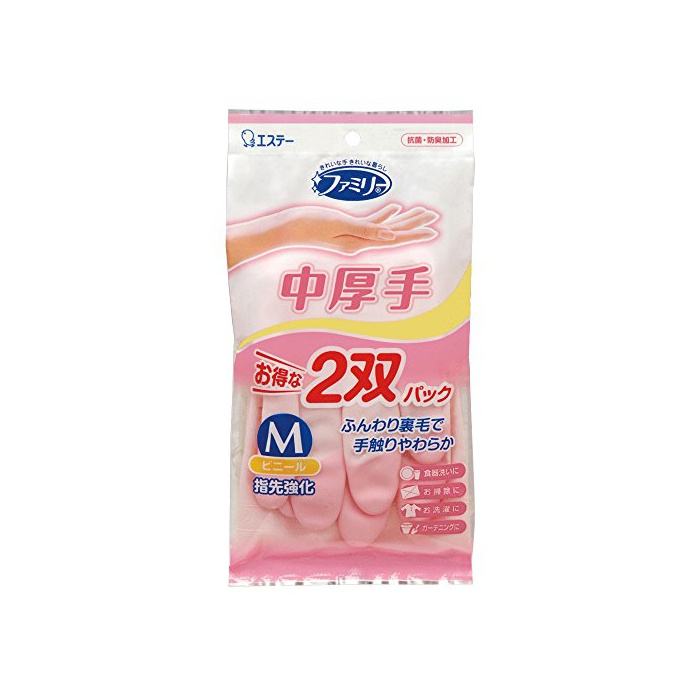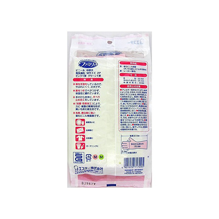 원본상품명: ファミリ? ビニ?ル 手袋 中厚手 指先?化 炊事掃除用 Mサイズ 2?パック (Mサイズピンク×1?Mサイズグリ?ン×1?)