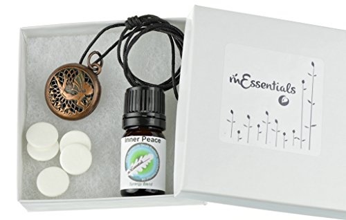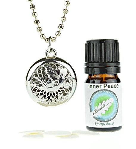 Fairy Ball Chain Aromatherapy Essential Oil Diffuser Necklace Pendant Locket Jewelry Gift Set (Inner Peace 5 ml)