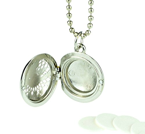 Open locket, add oil to pad, close chamber and enjoy the scent as it is released throughout the day or evening. (comes with 5 refill pads)