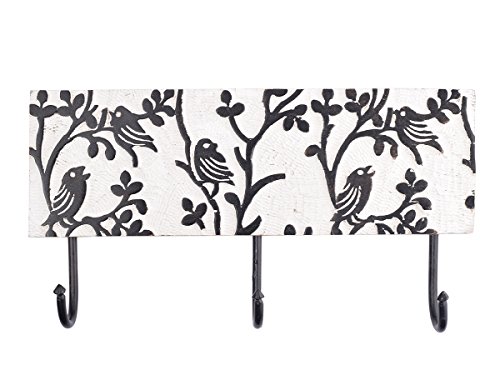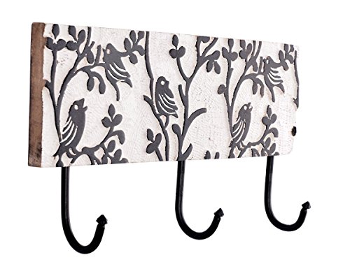 - Adorned with foliage pattern in a distressed finish, the holder comes with 2 large hooks that would look great when hung against any hallway, dresser or closet area.