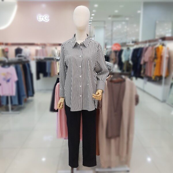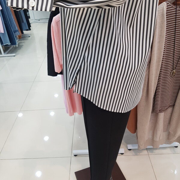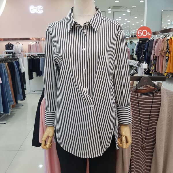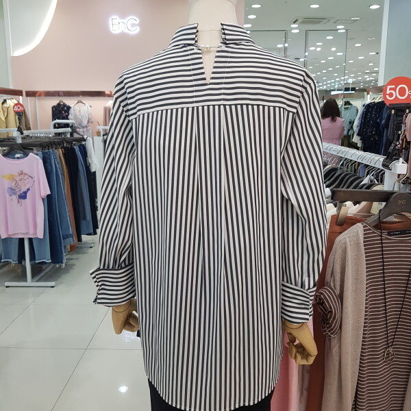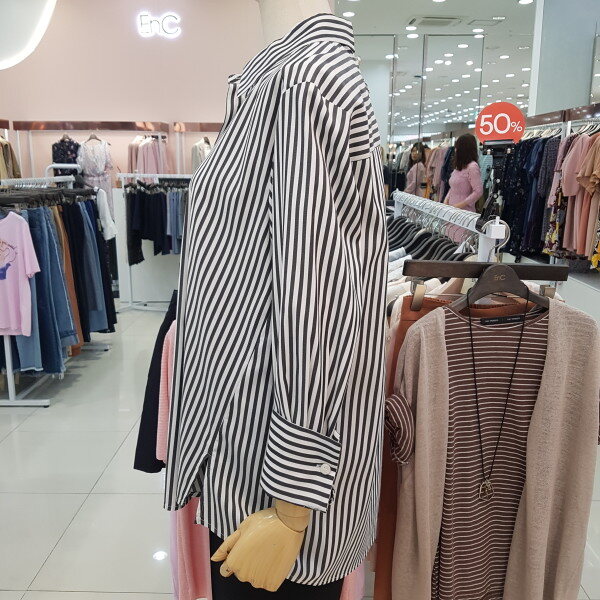 핑크컬러 스트라이프가 유해없이 봄여름가을 시즌을 길게입으실수 있스며 하단의 단추로 다른 분위기를 연출할수 있는 인기아이템