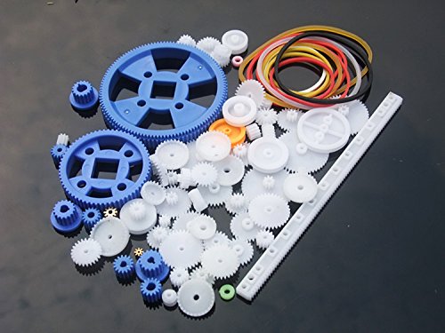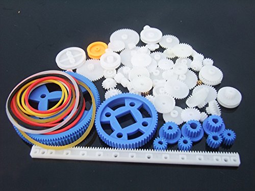 -. Feature : Material:plastic / included: 14X Double Reduction Gear (each one), 10X Single Reduction Gear (each on), 10X Crown Gear (each one), 2x Worm Gear (each one), 10X Spindle Gear (each one), 7X Belt Pulley (each one ), 4X Axle Sleeve (each one), 10X Belt (each one), 1X Connectiong Rack (each one), 1X Tee Collar, 9x Blue Gear, 2x copper Gear,