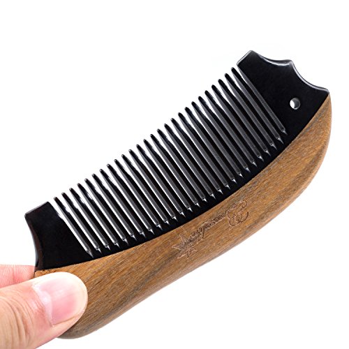 Breezelike Wooden Hair and Beard Comb - No Static Natural Sandalwood Horn Comb - Handmade Detangling Pocket Comb with Premium Giftbox