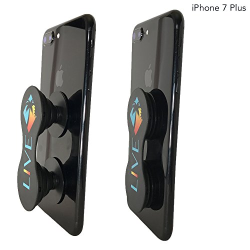 —• COMPATIBLE WITH ANY DEVICE ~ Works great for smartphones (large or small), tablets, and handheld gaming devices! Pop, tilt, prop, collapse, grip - Works in landscape and portrait modes for watching videos, web surfing, texting, gaming, group photos, FaceTime, and Skype. Now hold small and large phones/devices.