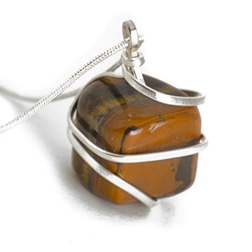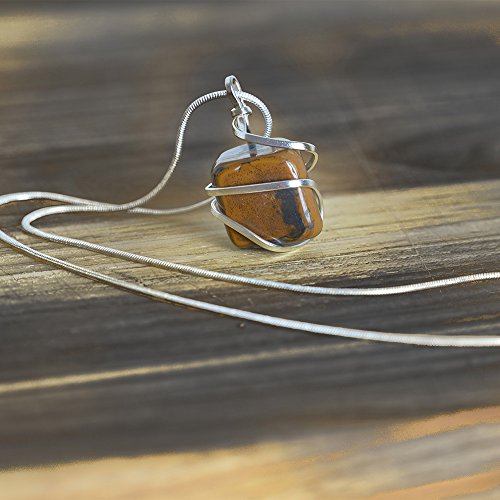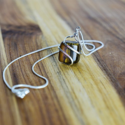 Raw Tiger Eye Crystal Pendant Necklace –Success Leadership Willpower Self Confidence Brings Luck and Prosperity - Authentic Stone on Silver Plated 18" Chain Real Gemstone Chakra Healing Charm