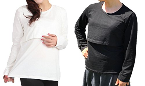-. Title : (エカイズ) EKA*is... 授乳服 長袖 2枚組 Tシャツ トップス インナー マタニティ 妊婦服 無地 w034