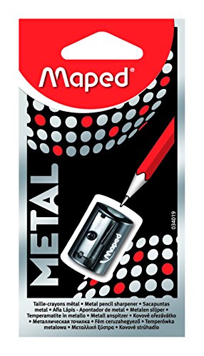 - Compact metal pencil sharpener fits easily into pencil cases