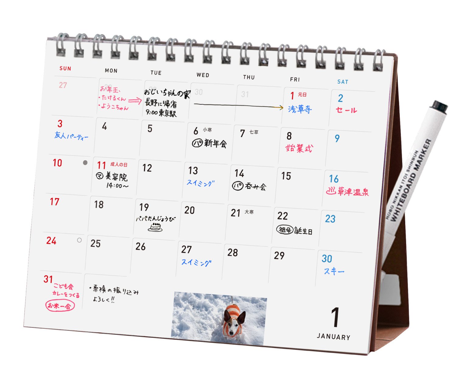 I bought it together with a medium day calendar medium. It is convenient because it can erase even writing it here. I use it on the desk.