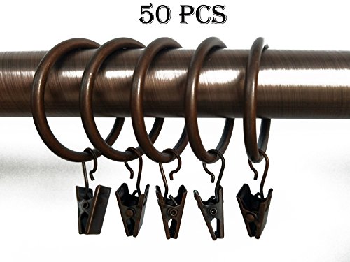 Sepcifications: 1.Material:Copper Metal 2.W.G:0.35kg(1");0.74kg(1.5") 3.Size:there are 2 sizes:1 inch and 1.5 inch,it is optional 4.Color:there are 3 color:black,copper,bronze,it is optional 5.Package including:50 pcs ,it is optional Clip Rings are a simple way to hang your drapery panels. They are quick and convenient to use by simply sliding the rings onto the rods, and then clipping the rings directly to any drapery panel or valance. To hang draperies with pleated pin hooks, simply remove the clip and slip the hook through the eyelet.If you have any questions,please contact us.Thank you. 0