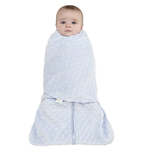 HALO SleepSack Plush Dot Velboa Swaddle, Blue, Newborn