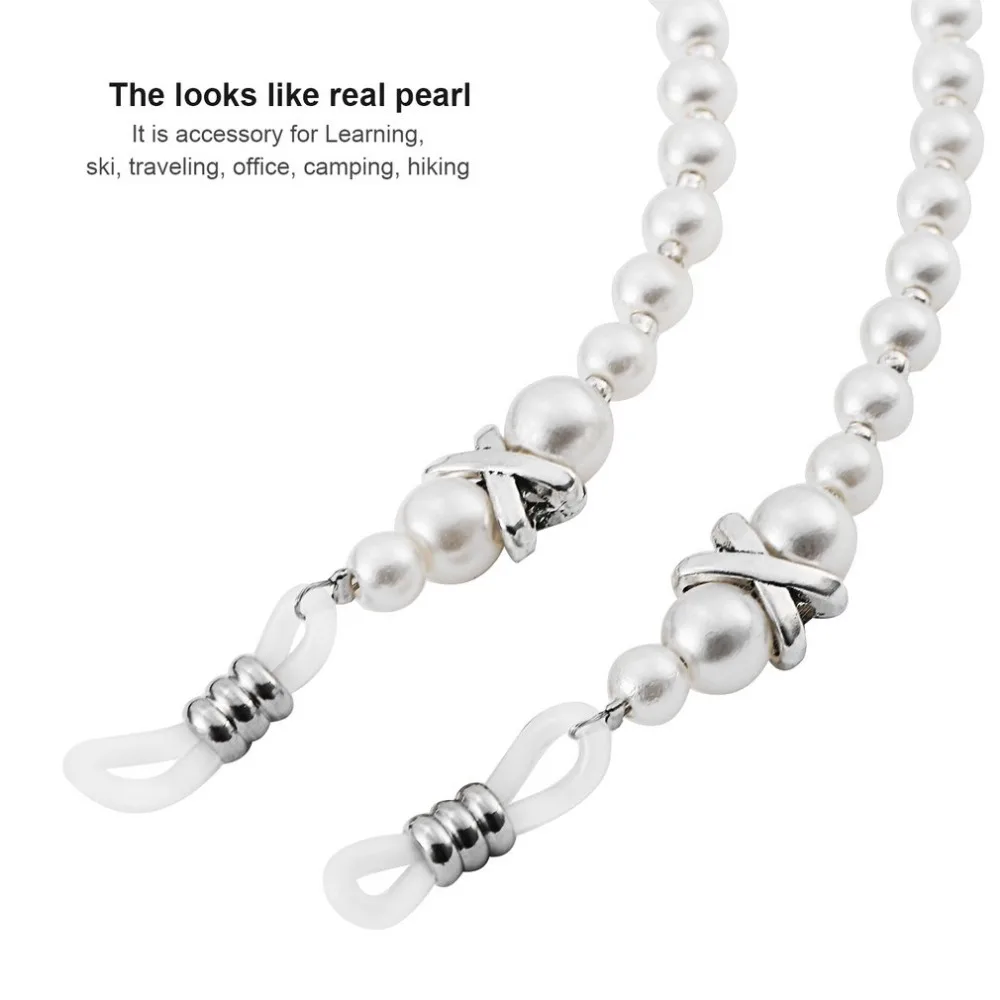 Reading Glasses Chain Cord Holder: Imitation Pearls Bead Chain Strap Cord for Spectacles Glasses Eyeglass