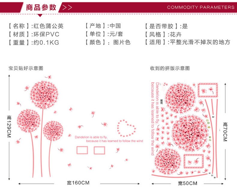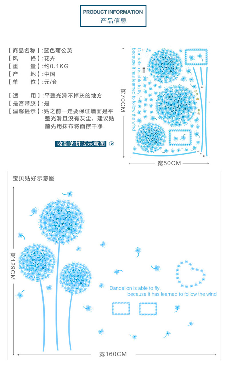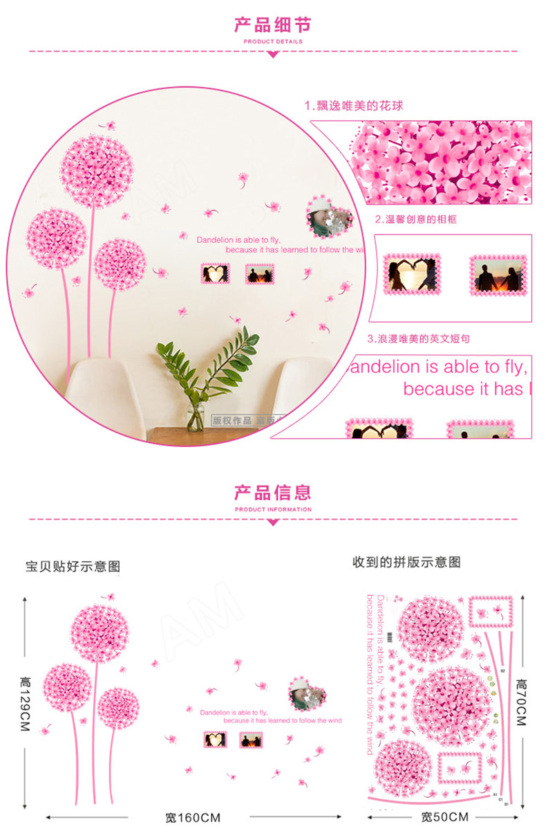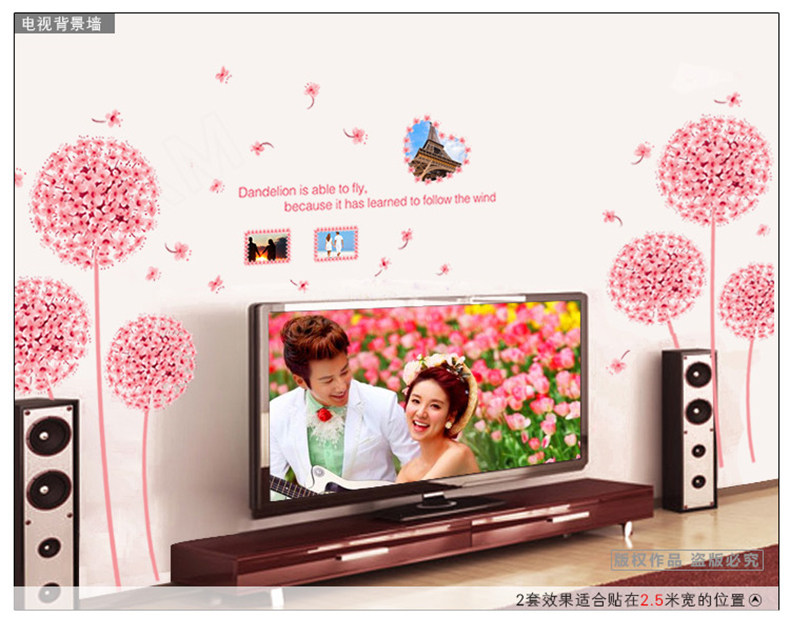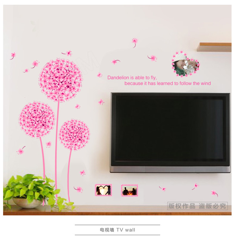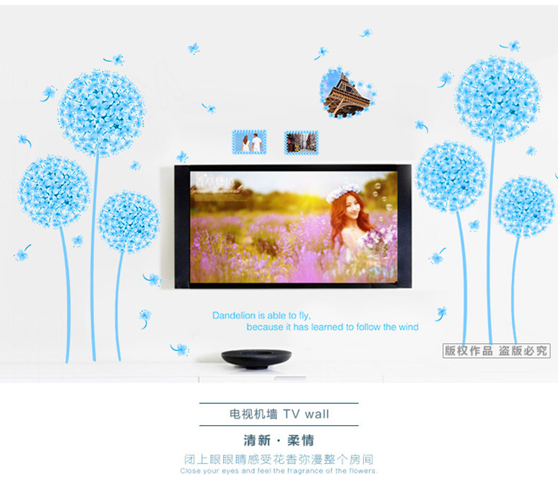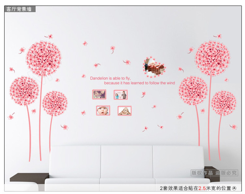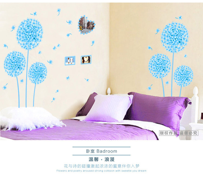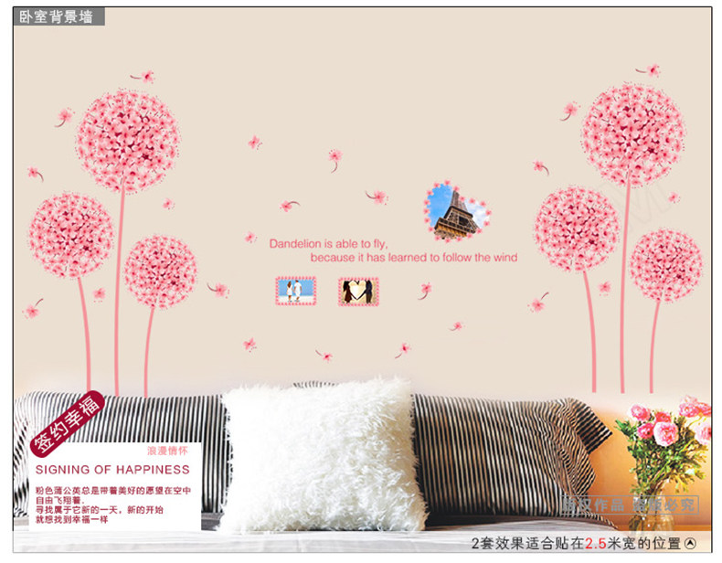 温馨蒲公英墙贴 婚房布置贴画卧室客厅电视背景墙装饰贴花可移除