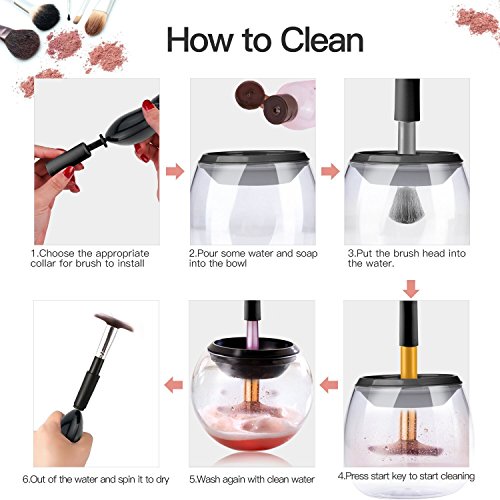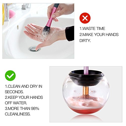 - ♥ High Efficient Cleaning - Fast cleaning and quick drying in a very short time, the automatic makeup brush cleaner can thoroughly clean and dry all sizes of brushes. It saves your time, money and effect.
