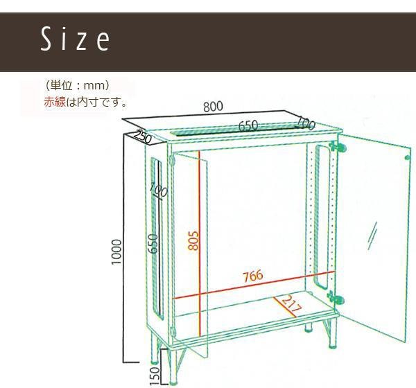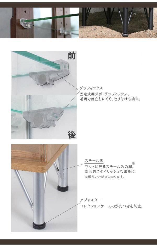 | 素材・材質 | 本体:MDF突版貼り、扉:4mm厚強化ガラス、棚:5mm厚ガラス、脚:スチール |