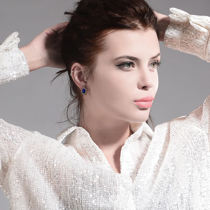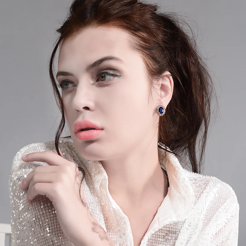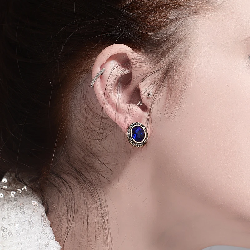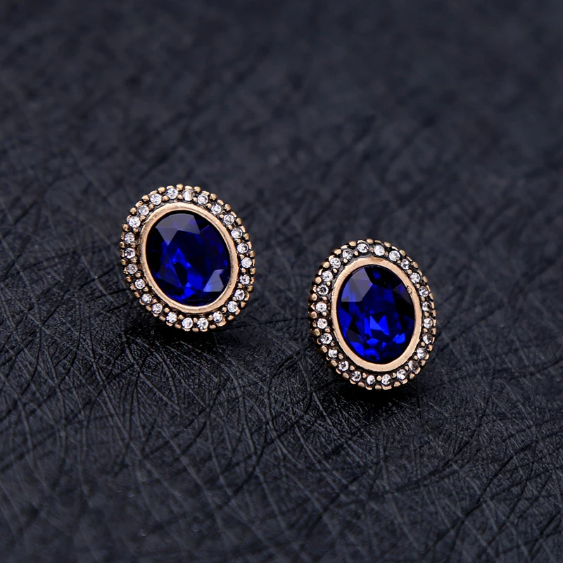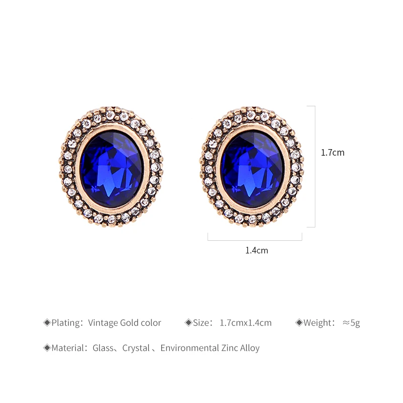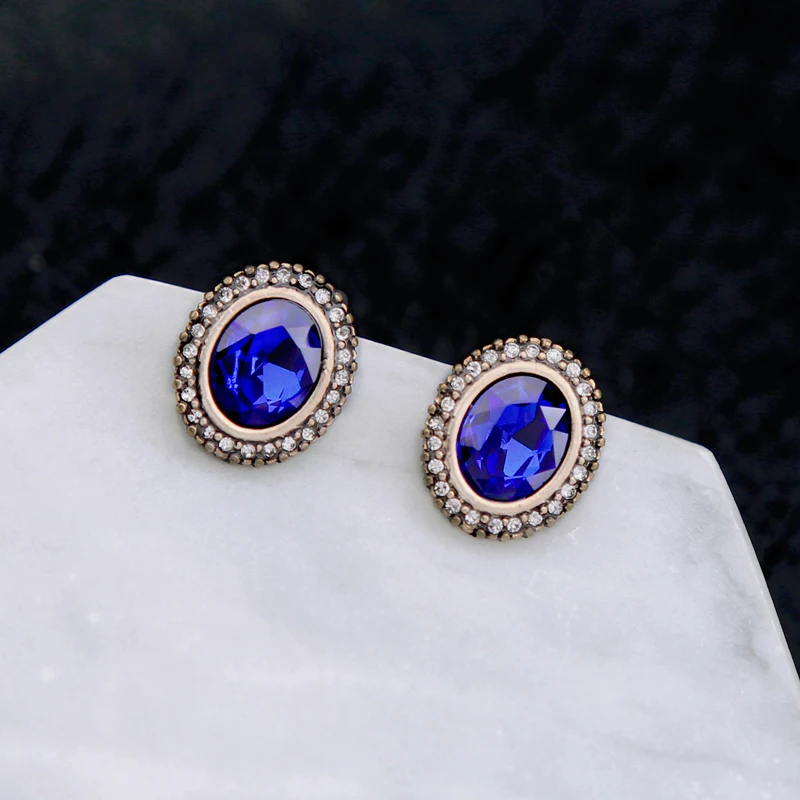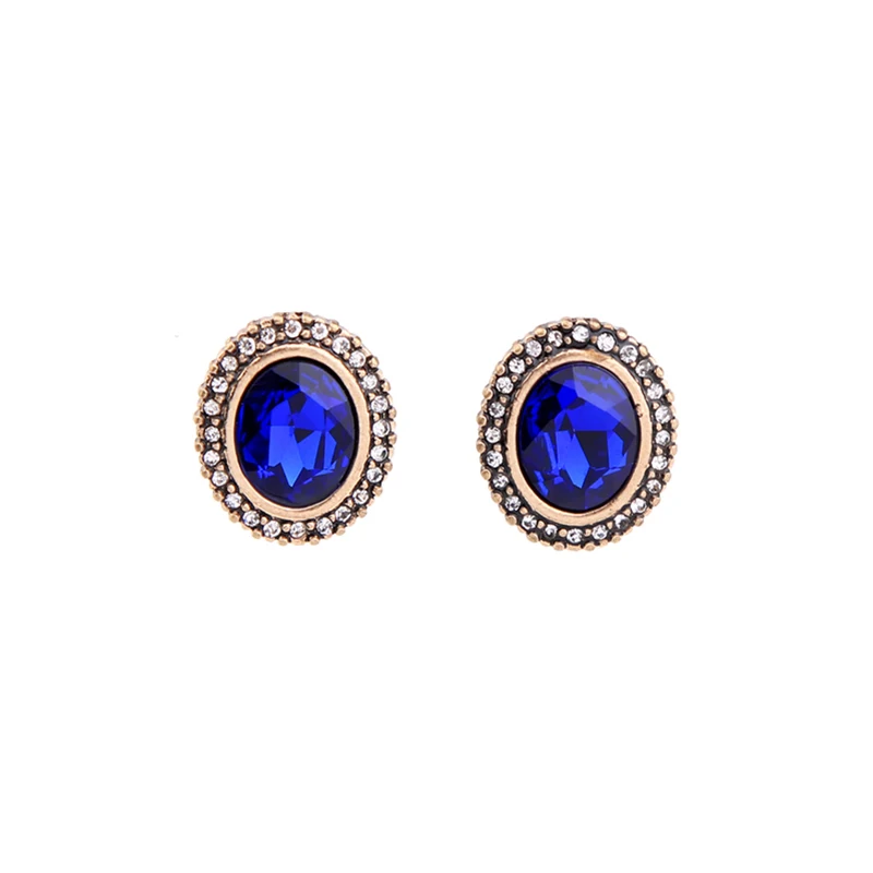 Production name ::KISS ME Simple Blue Glass Crystal Oval Stud Earrings