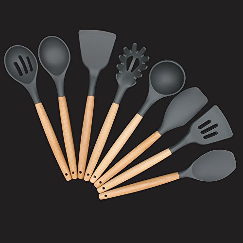 Cooking Utensils Set, 8 Piece Kitchen Utensils Set Silicone with Wood Handle for Nonstick Cookware