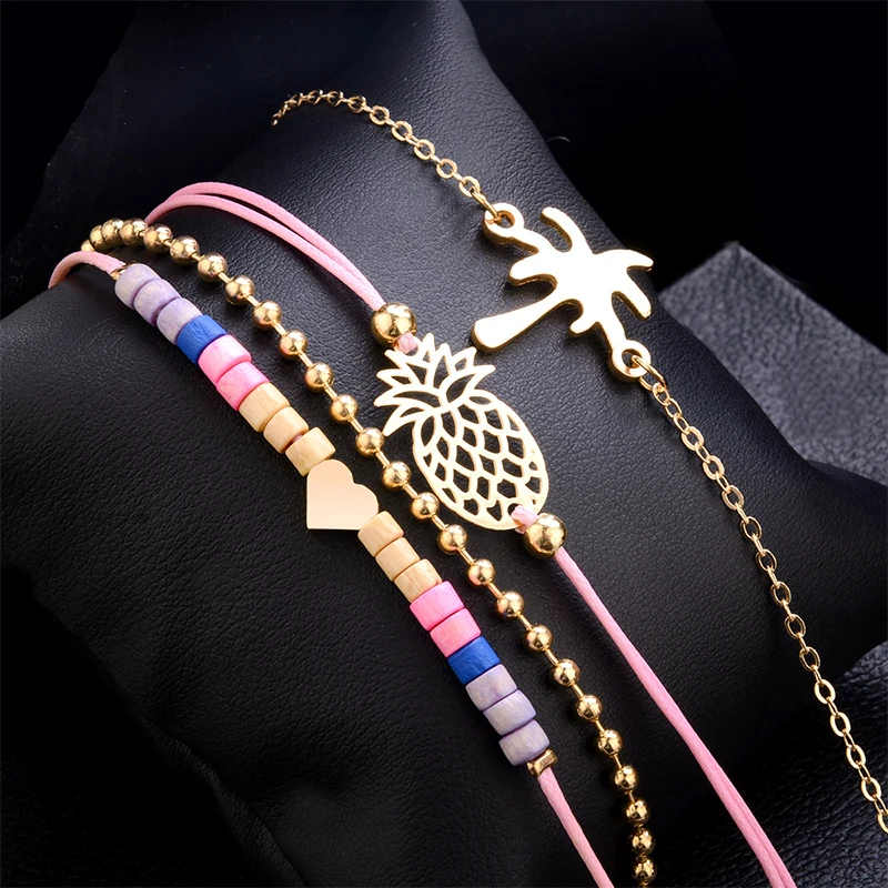 Idea :Pineapple Dreamcatcher Heart Bead Coconut Tree Tassel Bracelet