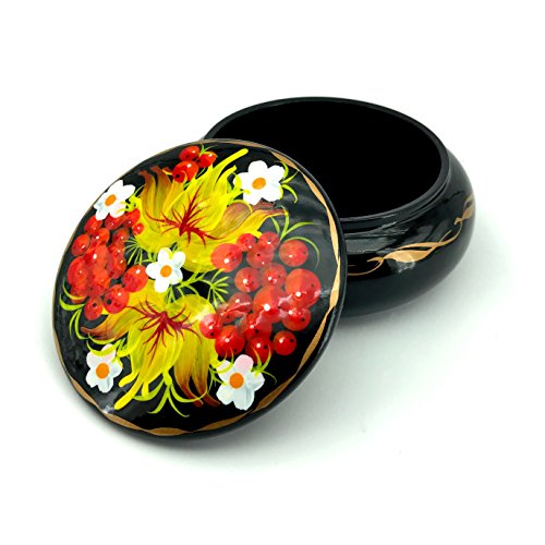 Carefully made of wood, lined on the inside with soft velvet, hand decorated with high quality acryl paints and coated with deluxe lacquer finish (4 layers!). Made in the heart of Europe - Central Ukraine.