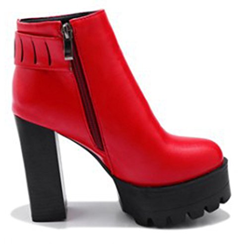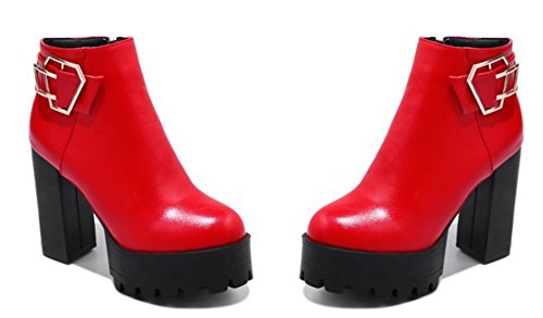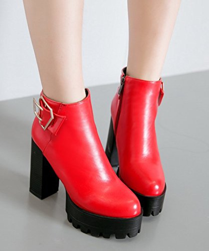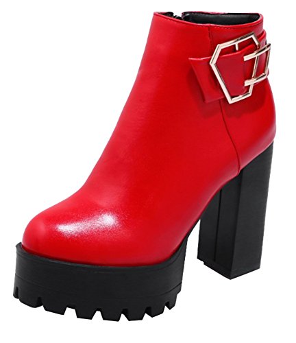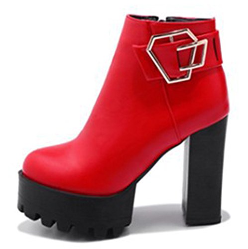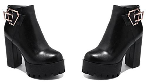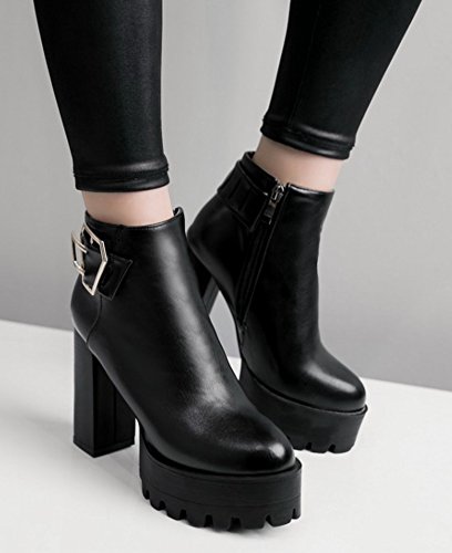 (SHOWHOW)/Women's/Boots/DIRECT FROM USA/SHOWHOW Women's Trendy Buckle Round Toe High Chunky Waterproof Ankle Boots