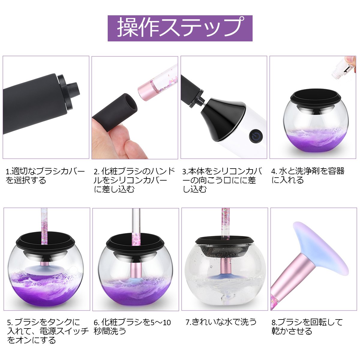 Electric makeup brush cleaner cleans and dries your makeup brush within tens of seconds.
