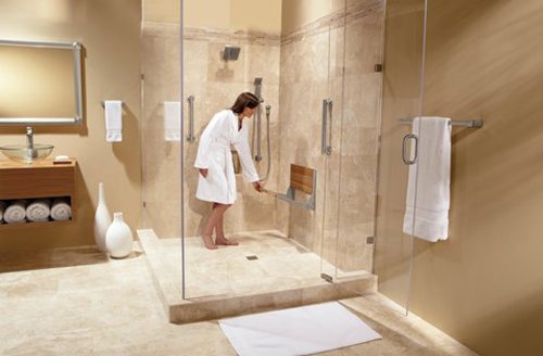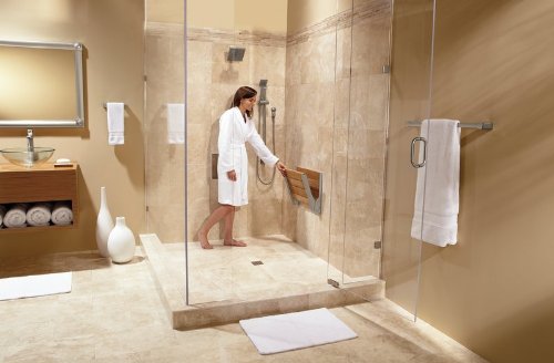 Moen Teak Wood Folding Shower Seat, Aluminum (DN7110)