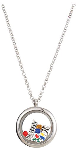 Made of zinc, glass, rhinestones and steel. Chain is 24 inches in length. A fun and cute gift for a loved one!