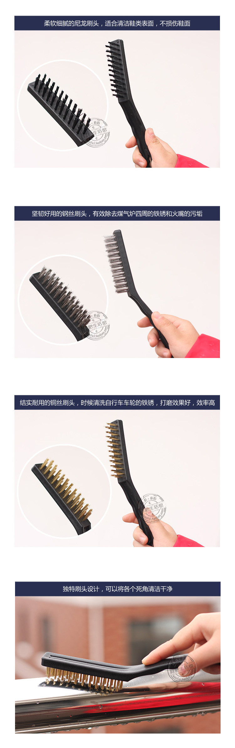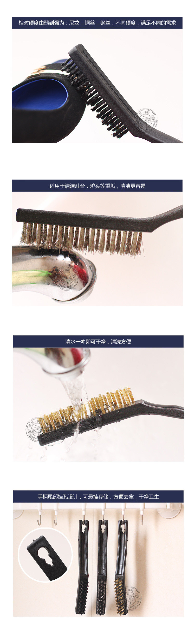 Japanese quality? kitchen stove cleaning brush? three kinds of different materials bristles meet the needs of various places. [Material: Steel wire brush (silver)? brass brush (yellow)? nylon brush (black)]