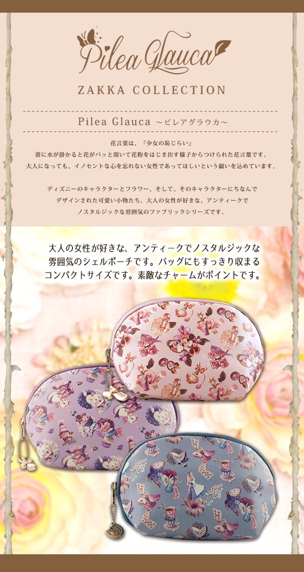 | 大人の女性が好きな、アンティークでノスタルジックな雰囲気のシェルポーチです。バッグにもすっきり収まるコンパクトサイズです。素敵なチャームがポイントです。 |